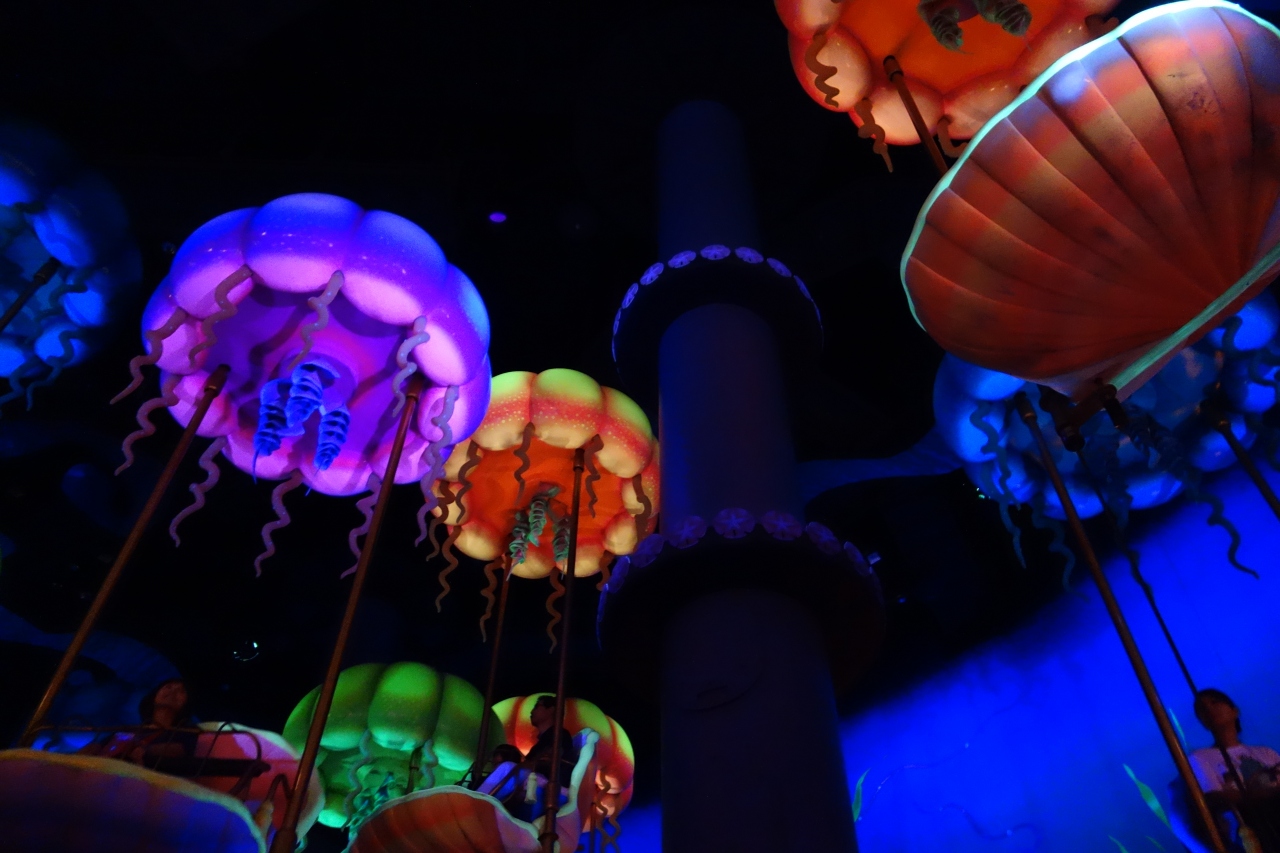 東京ディズニーシー内、マーメイドラグーンの屋内にあるライドです。2人乗りなので、僕は双子の一人と、妻がもう一人と乗りました。ゆっくり上下するだけなので、全然怖くはありません。あっという間に終わってしまいます。
