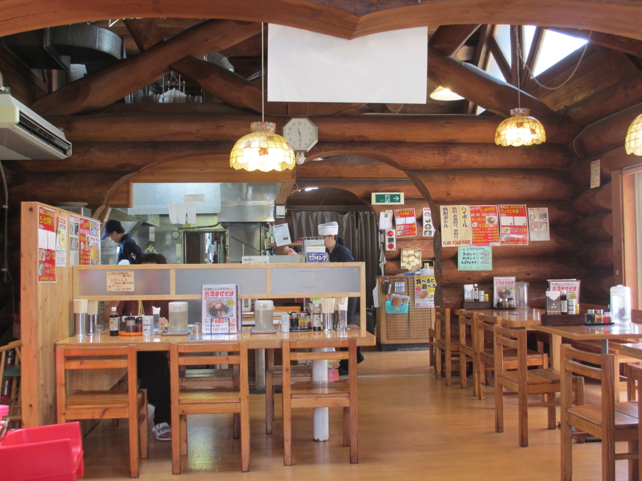 長野県を中心に展開するラーメンチェーン店のひとつです。諏訪インターから3分、山下清博物館のすぐ近くにあります。ログハウス調の外観、山小屋風の内装で、地元の人たちに定着している店です。開店20分後に伺いましたが、3分の2の席が埋まっていました。メニューも豊富で、持ち帰りメニューもいろいろあります。毎月第2、第4木曜日は餃子半額、3世代で入店すると300円割引券、スタンプ制度など工夫した営業に好感が持てます。