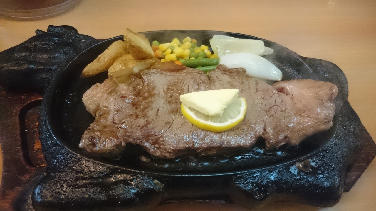 那覇・松山にある24時間営業の食堂。近くにあるハイウェイ食堂と比較されますが、こちらの方が明るい雰囲気。テーブル席、座敷席、一人用のカウンター席かあり、入口から見るよりも広め。メニューは、沖縄そばやオムライス、カツ丼といった定番メニューからステーキまで、リーズナブルに食べられます。ステーキは200グラムと250グラムがあり、いずれも1000円代前半。お肉はリブロースかサーロインから選べます。お肉は柔らかく、これで本当に1000円代?、というくらいの味。スープ、サラダ、ライスつきです。200グラム賀うりきれだったので250グラムにしましたが、満足度はかなり高いです。沖縄では〆のステーキがあるそうですが、朝からでもステーキか食べられます。店員さんも何となく心優しく、残したものを包む容器を頼んだら、もちろん気軽に渡してくれました。