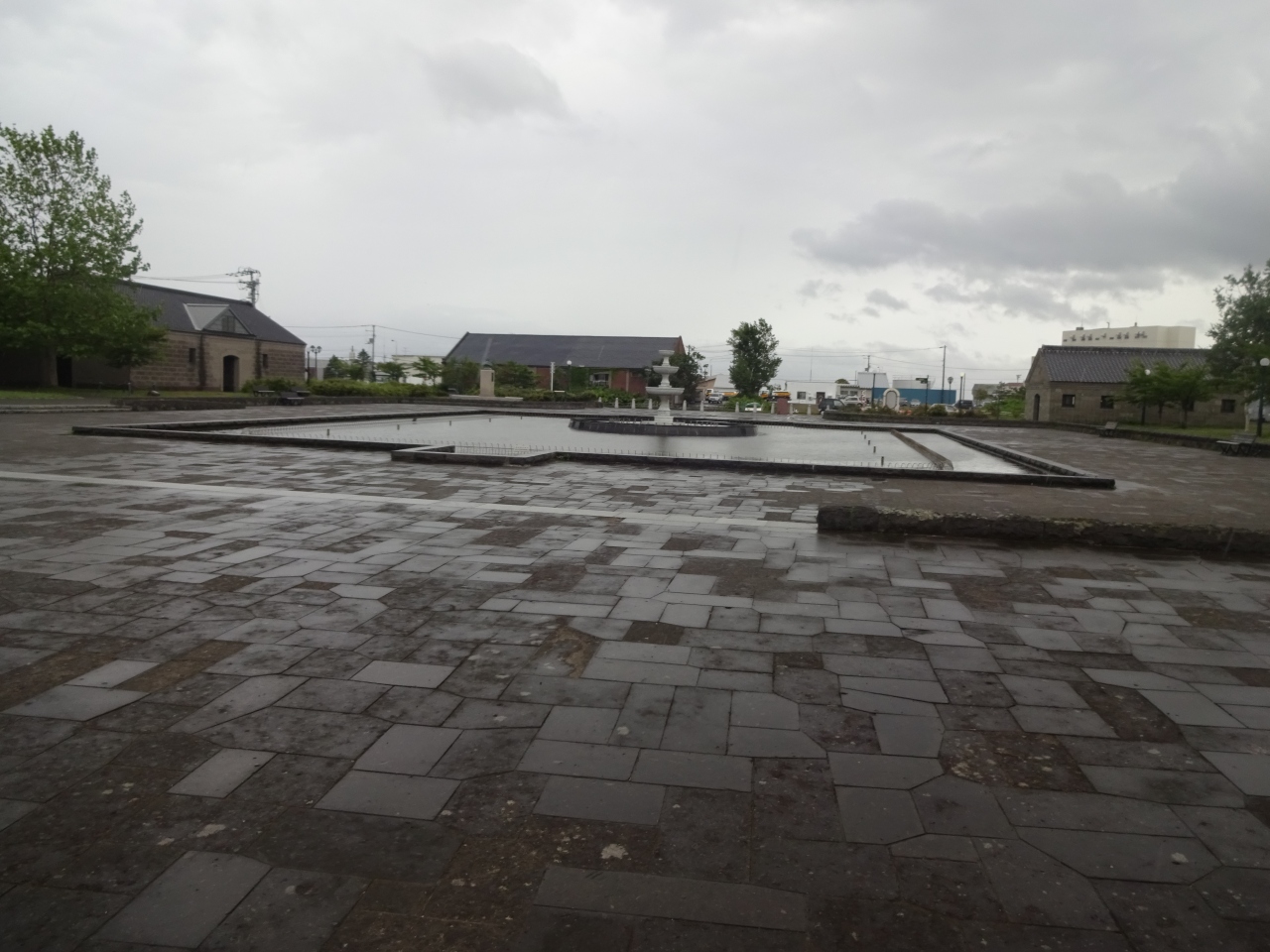 この公園は広々して開放的。裏手には旧小樽郵船の重厚な建物群があった。