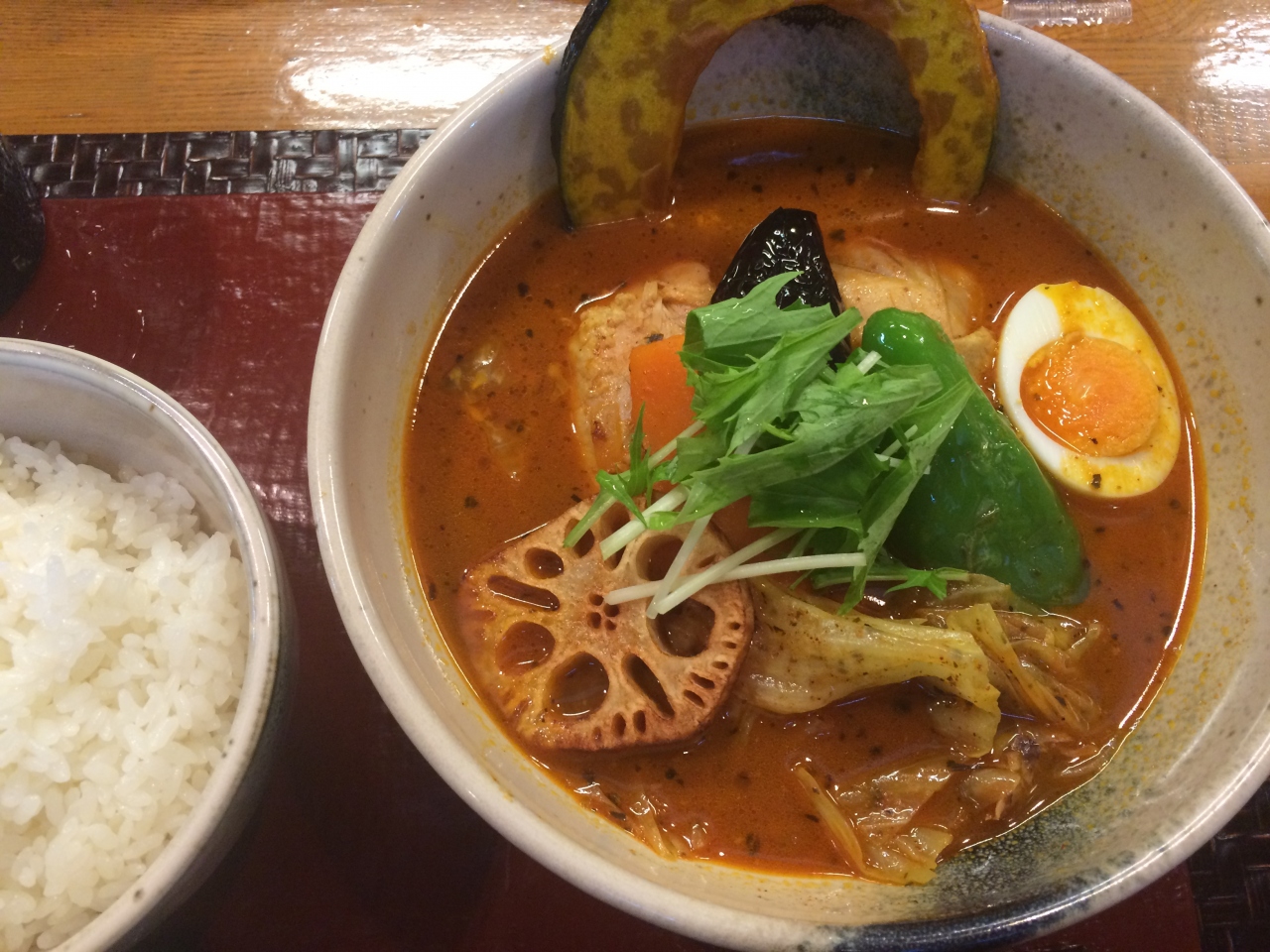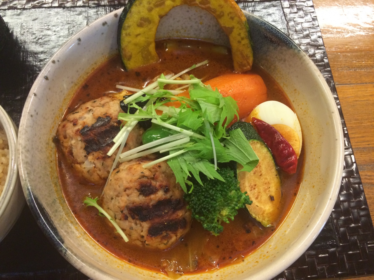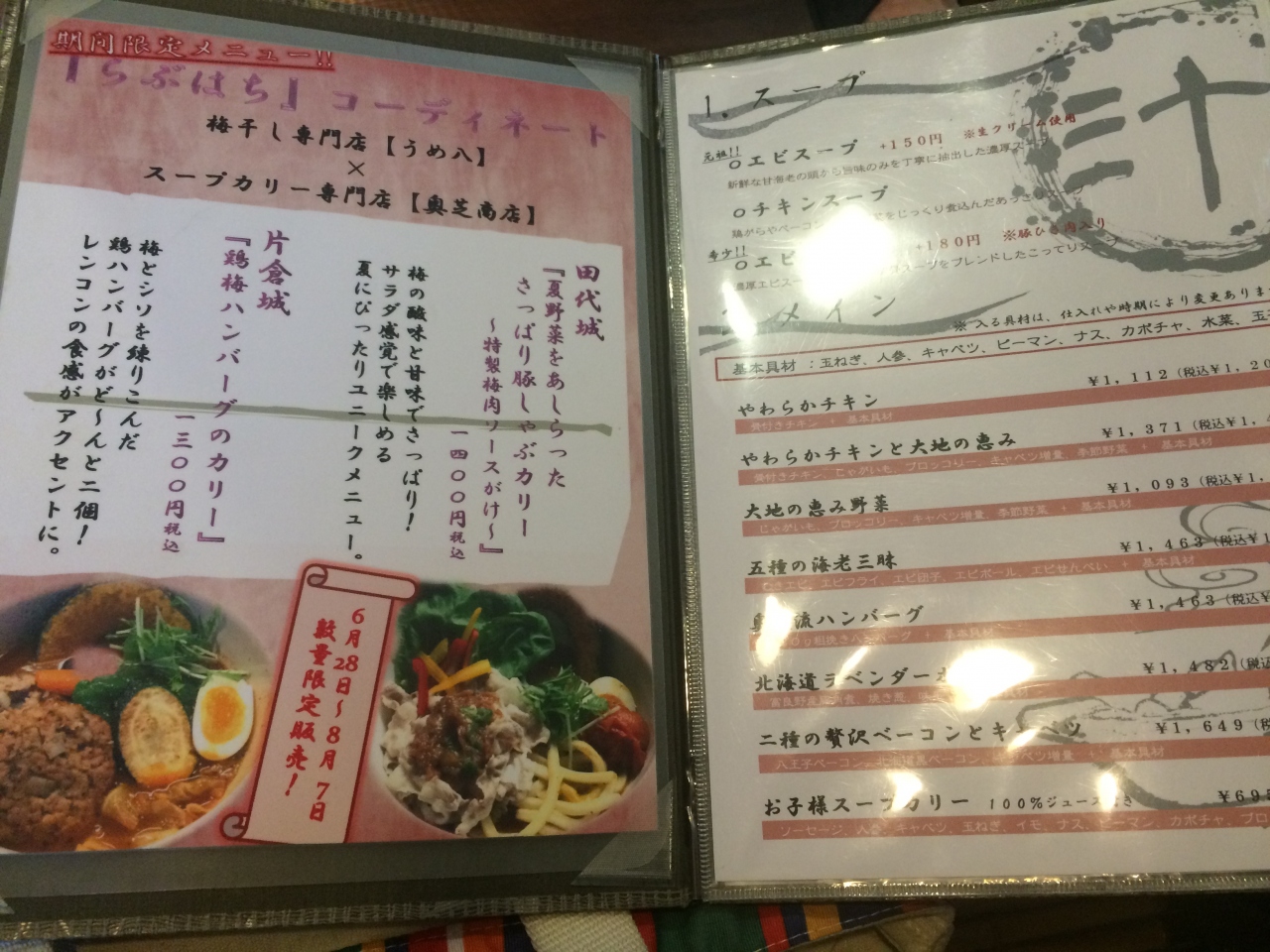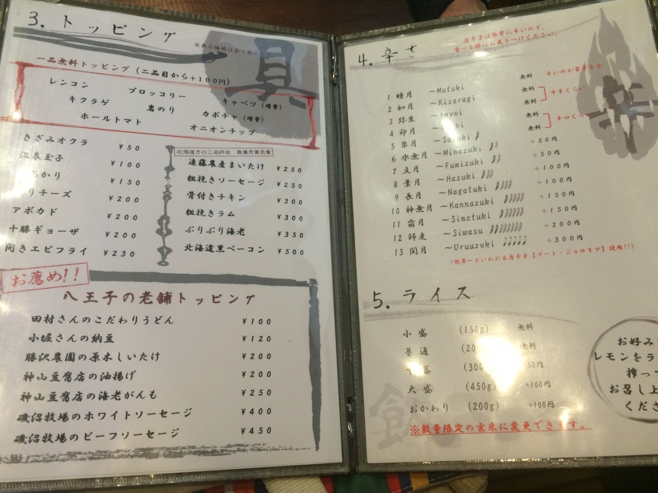 メニューが分かりにくいのですが、スープ(チキン・エビ)・具材・トッピング(1品目は無料)・辛さ・ご飯の種類(白米・玄米)をそれぞれ選ぶ注文方法です。