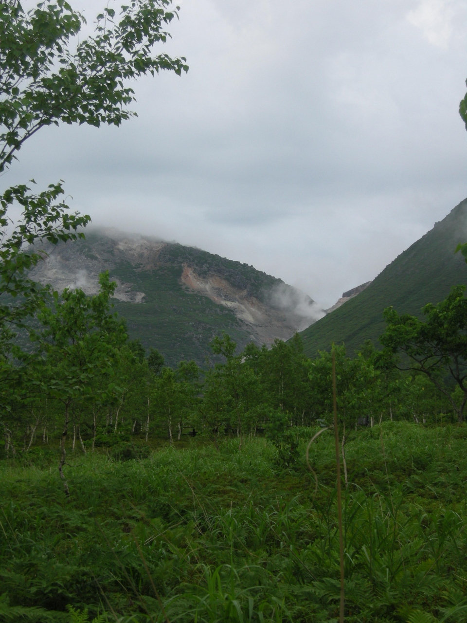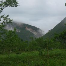 川湯温泉から硫黄山まで続く約2.5キロの路です。川湯温泉側から進むと、最初は高い木に囲まれた鬱蒼とした森の中の道が続きます。それから背の低いツツジの仲間の群生地になると突然視界が開けて、硫黄山が遠くに見えてきます。