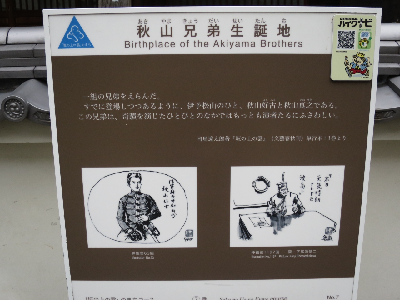 松山 市電大街道駅から城山ロープウェイ向かう途中右手に入った先に「坂上の雲」で描かれた秋山兄弟の生誕の地がある。