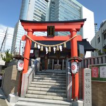 周囲の近代的な建物の中に、朱色の鳥居がとても目立っていたのが印象的でした。