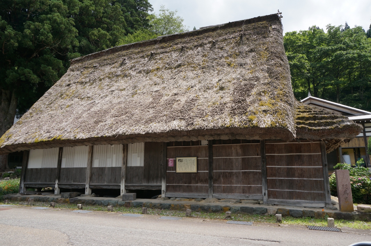 やや小さめの合掌造りの家が、静かに佇んでいました。有名な上梨地区ではなく、庄川の反対側の田向地区です。国の重要文化財に指定されています。内部は非公開で、外観のみの見学でした。当時の姿をそのまま残していました。