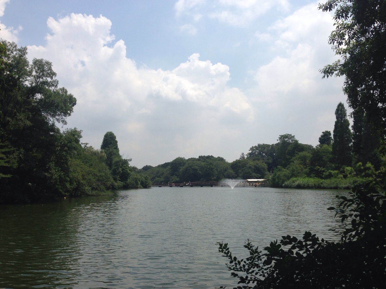 井の頭公園内の大きな池、神田川の起点となる池と言う事で妙に親近感が湧く。でも水はお世辞にもキレイとは言えない。これ歩いて下って行けば…などと空想してしまいます。