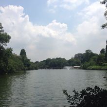 結構横に長いこの池にはボート多数浮かんでいて、井の頭公園らしい景色。
