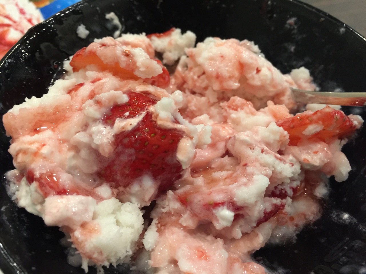 酸っぱめのイチゴでしたが、ミルク味の氷と