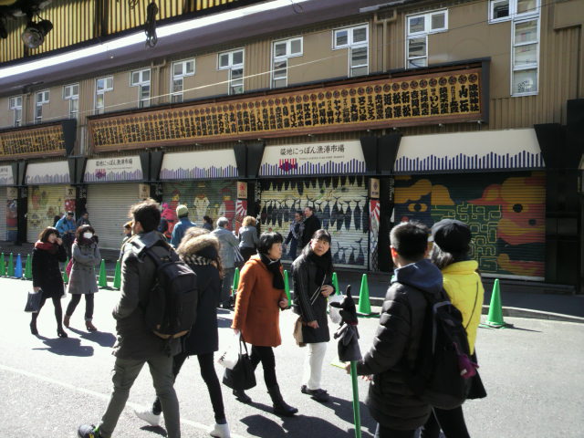 築地にっぽん漁港市場は、日本各地の鮮魚を主とする食料品店街です。