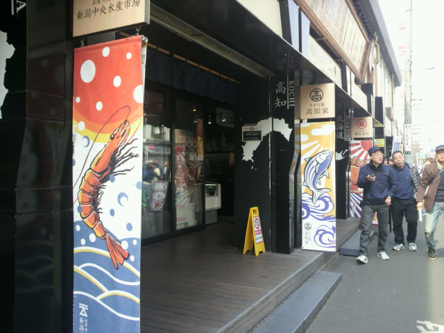 場外市場の波除通りの西側沿いに多数の店舗が入っています。