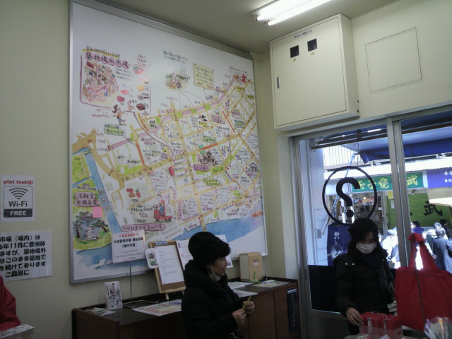 ぷらっと築地は、場外市場の中にある案内所等の施設です。気軽に利用できます。