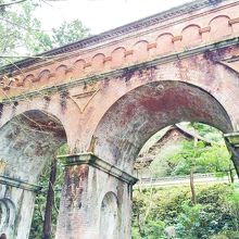 水路閣前に石のベンチ!?があるので、ゆっくり座って眺めたりもできます。