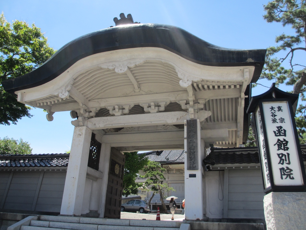 函館元町の二十間坂の上の方に建っている寺院です。1709年に創建され、1907年の函館の大火で焼失し、1915年日本最初の鉄筋コンクリート寺院として建てられました。当時はコンクリートに馴染まない人々からの寄付金が集まらず苦労し、人々に理解してもらいやっと建てたそうです。今は防火や耐震のための鉄筋コンクリートの神社仏閣は珍しくありませんが、当時なかなか理解してもらえず苦労した話に人々の信仰心を強く感じます。平日昼間で訪れる人が少なかったです。
