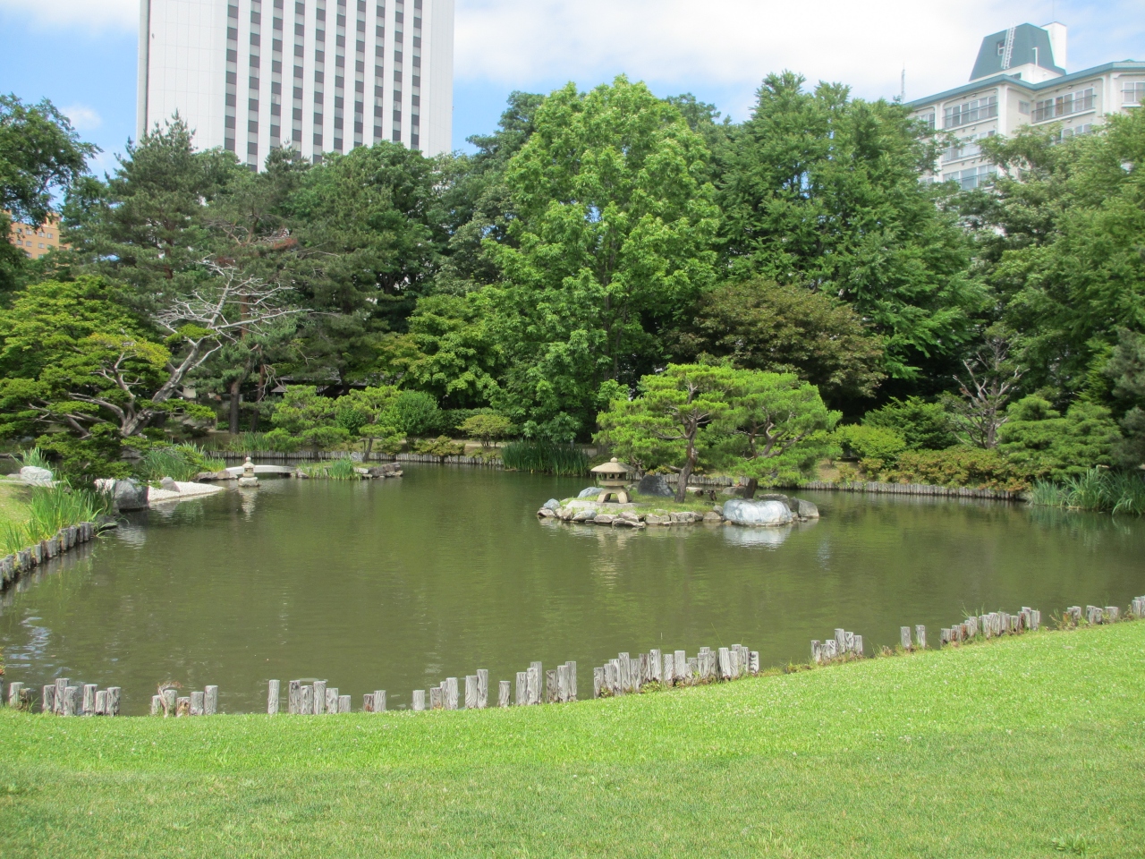 中島公園にある日本庭園内にあります。小堀遠州が滋賀県長浜に建てたと伝えられています。1971年に現在地に移築され、雪による倒壊が起こり、2008年に補修調査組み立てを行いました。八窓庵のすぐそばをぐるりと一周して外から見ることができます。内部は利用されていないのか殺風景でした。日本庭園には滝や池があり、ベンチで休む人や芝生で寝転がる人がいました。広い中島公園が自然豊かな公園なので日本庭園は小規模で見劣りします。八窓庵がメインの日本庭園でした。