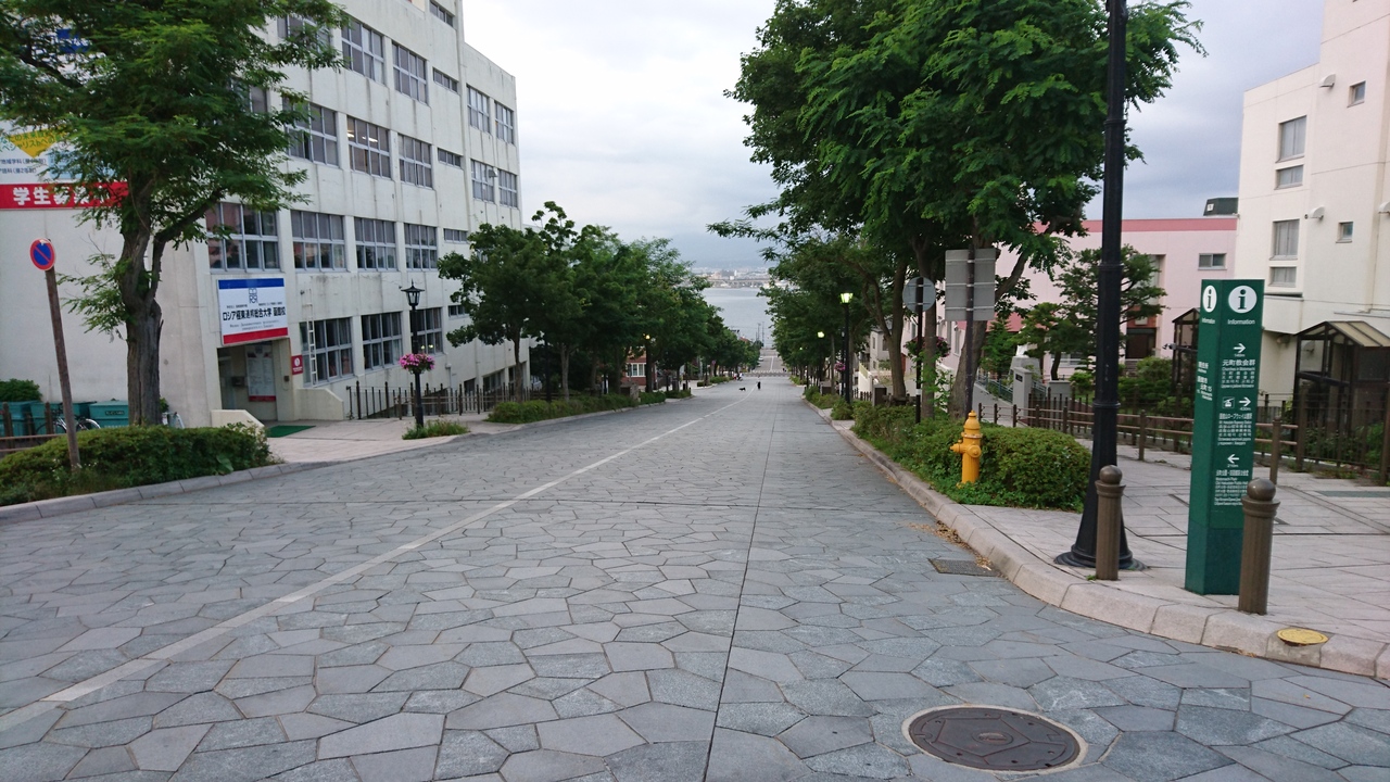 函館八幡坂は函館港方面から、函館山へ続く幅の広い坂です。