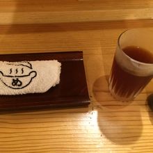 着席後、よい香りのするおしぼり、お茶とメニューが提供されます。