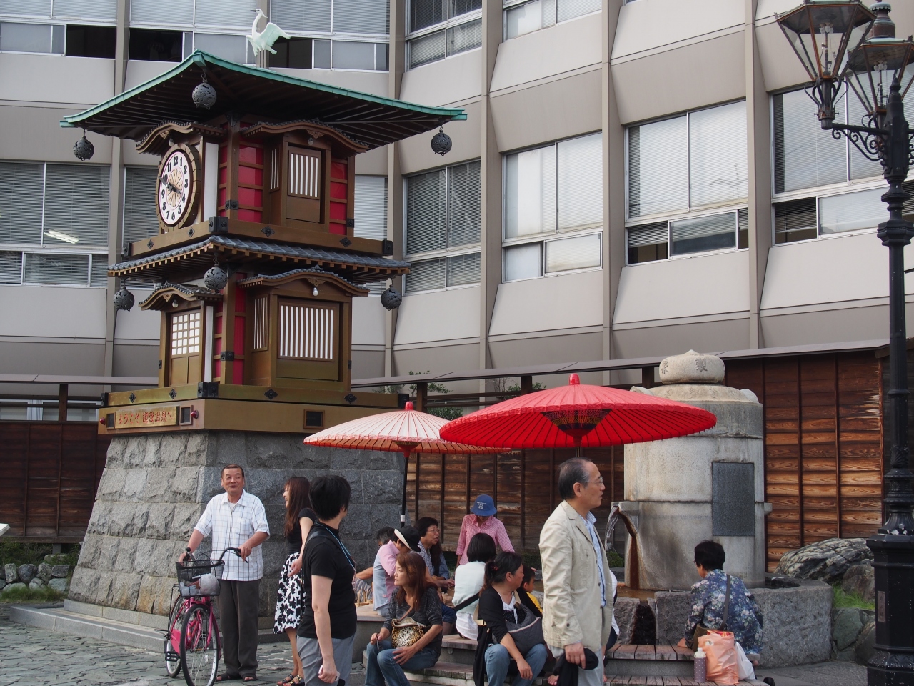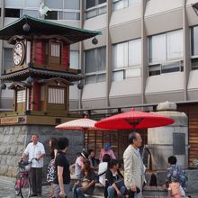 道後温泉駅前にある、道後温泉のシンボル的な時計台。あいにくカラクリは見られませんでしたが、足湯などもあり観光客や地元の人など多くの人で賑わっていました。分かりやすい立地から団体客の待ち合わせ場所としても使われているようです。