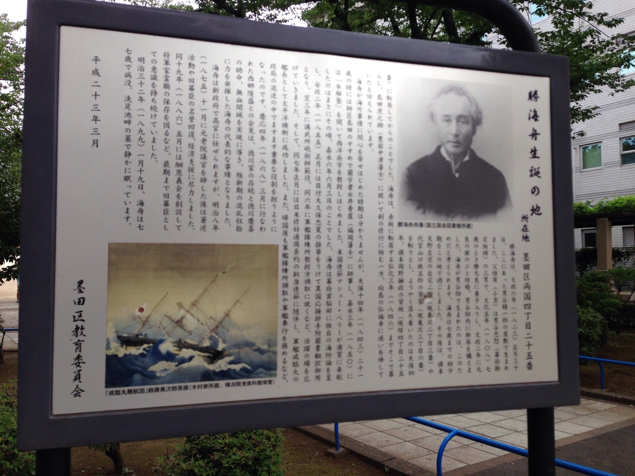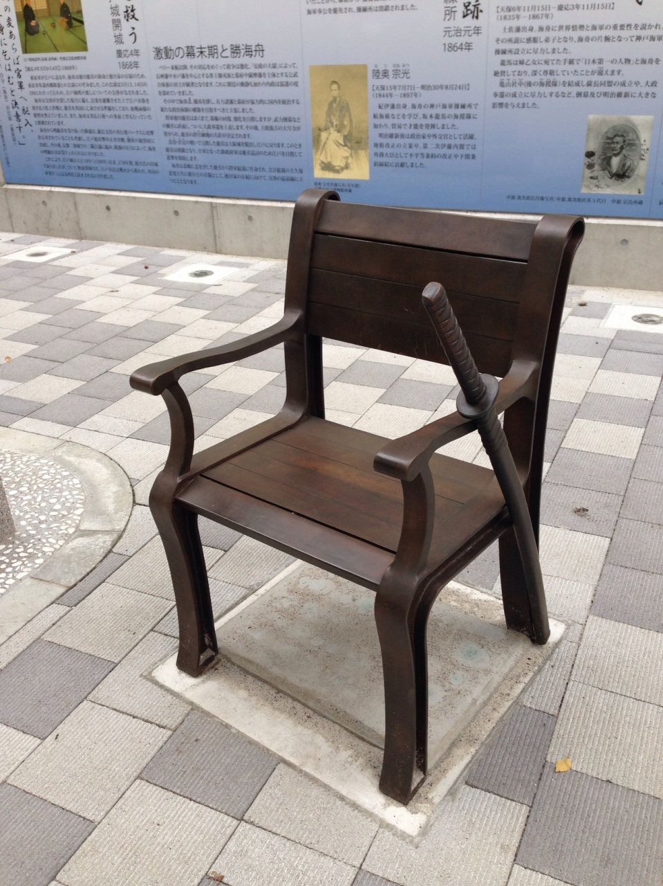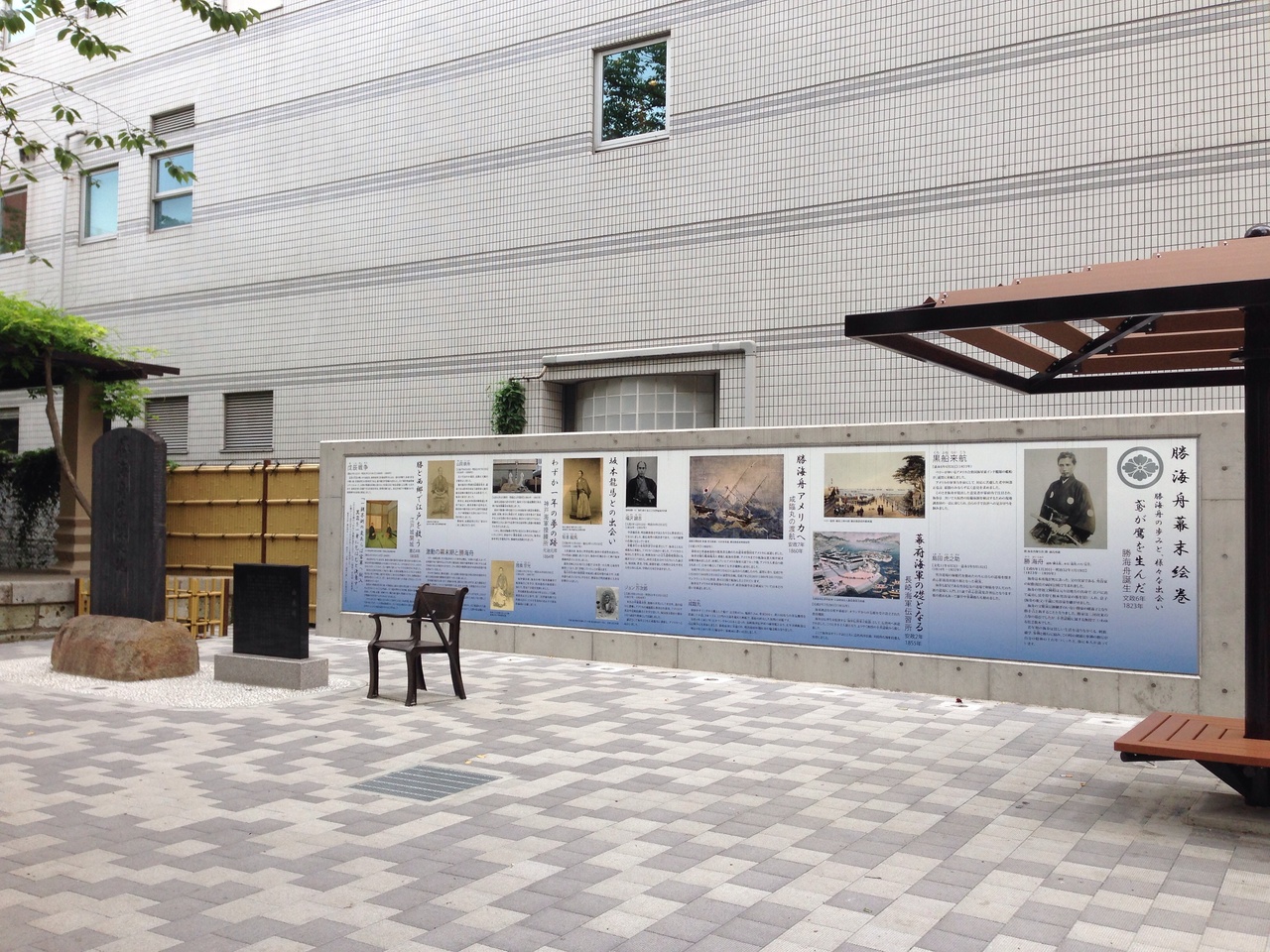 両国公園の一部に有り 『勝海舟幕末絵巻』なるものから 本人になりきって記念写真が取れそうな 日本刀+椅子…結構立派なスポットです。