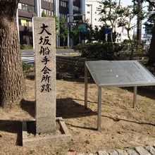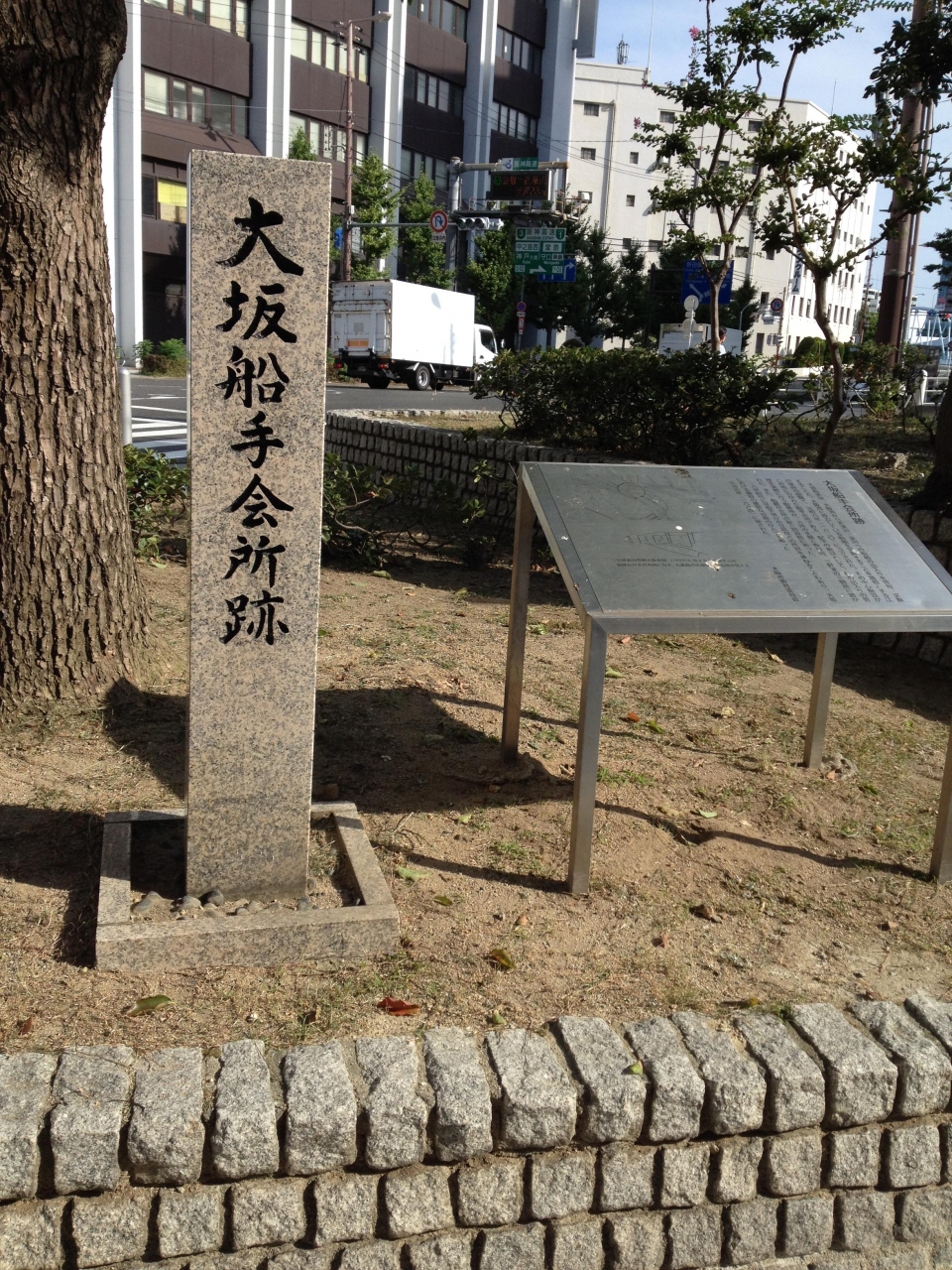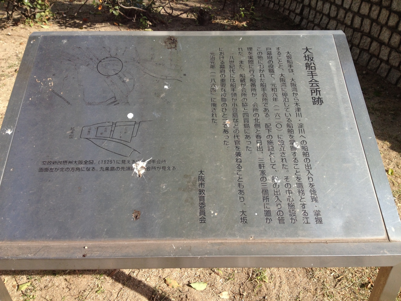 大阪(大坂)は商業の中心地で、大阪湾から淀川、木津川に入港してくる船は多く、それらを管理するためにおかれた、幕府でも重要な役職の一つだったようです。今でいう北港方面の春日出と大正の三軒家にもあったようです。会所そのものは元治元年(1864年)に廃止されるまで続きました。阿波座駅から本町筋を西に進み橋を渡ると見える川口交差点に南西側にあり、やや、植木などで見えにくいですが、晴れた日などは明るい写真を撮ることができ、見つけるのには苦労しません。