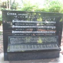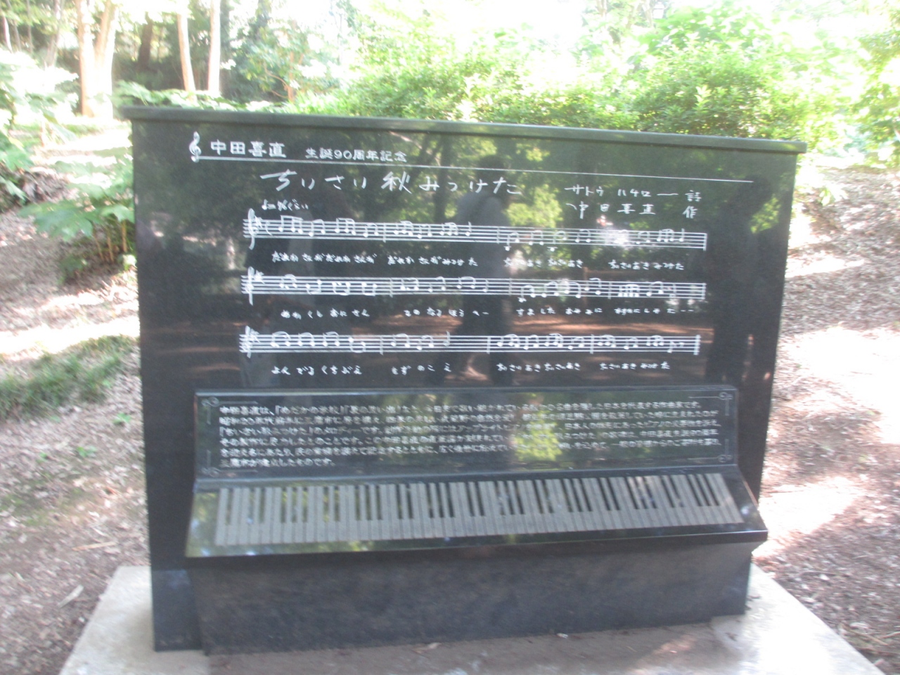 三鷹・吉祥寺界隈を散策した際に見ました。井の頭公園内にあり井の頭池の南側を歩けば見つけられると思いますが、こちらの碑はなぜか園内マップに載っていませんでした。「ちいさい秋みつけた」の楽譜が書かれていて結構凝った碑だと思いました。