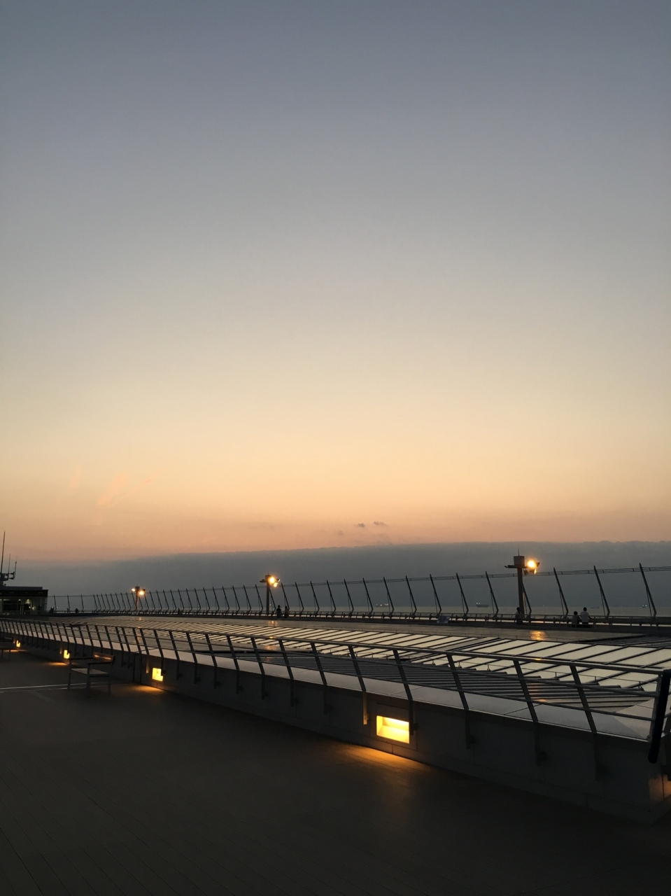 中部国際空港から出国前の待ち時間にスカイデッキへ。夕暮れ時でそよ風が吹いていて気持ちが良かったです。飛行機の発着を見ながらベンチで一休み。家族連れやカップルが数組と人影はまばらでした。ライトアップ等は特にありませんでした。
