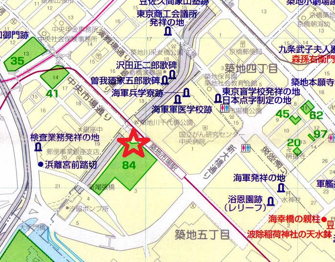 当時の海軍水路局は、築地の海軍施設内に創設され、築地5丁目にありました。