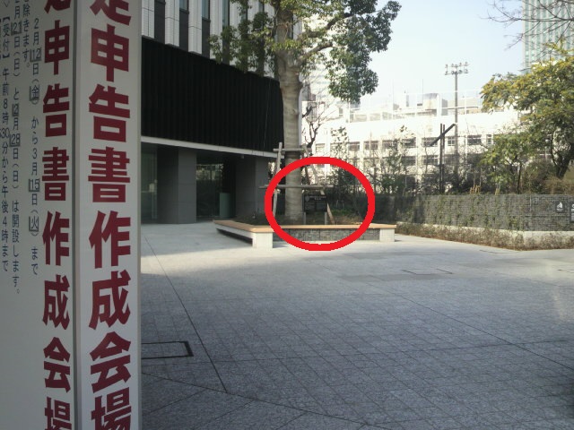 日本国海図及び海洋調査発祥の地との標識が、東京国税局の建物の前にあります。