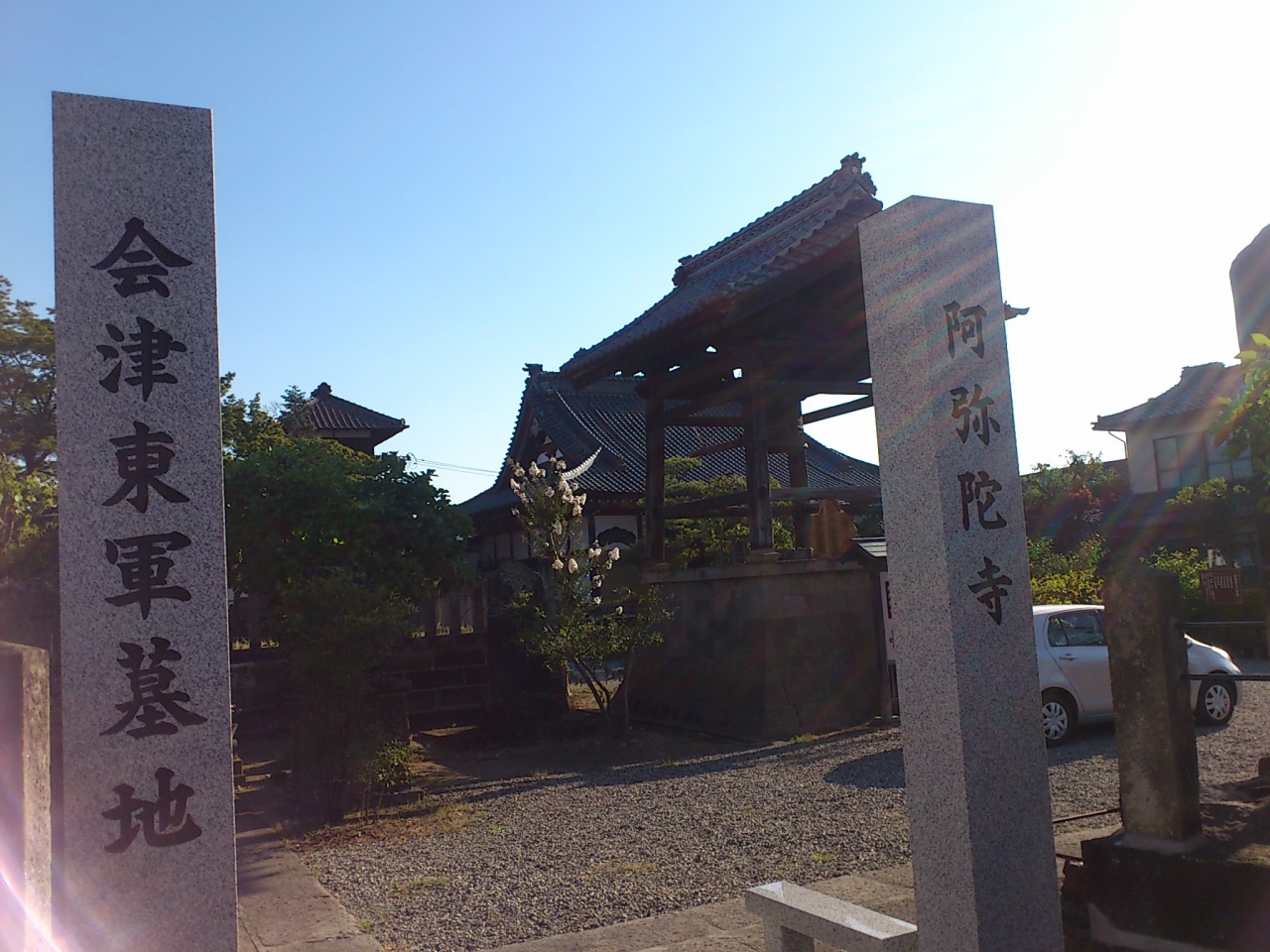 会津若松の鶴ヶ城に行った後に市内巡回バスの赤べえに乗り、会津若松駅に戻る途中に阿弥陀寺東というバス停で下車しました。次のバス停の七日町駅の方が近いかもしれません。戊辰戦争で敗れた会津藩士が眠っているお寺です。鶴ヶ城から移された御三階と云う建物もあります。