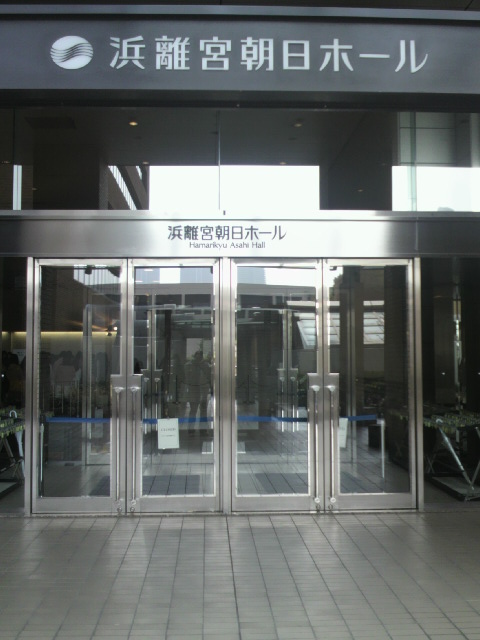 地下鉄の築地市場を降りて、地上に出ますと浜離宮朝日ホールが見えます。