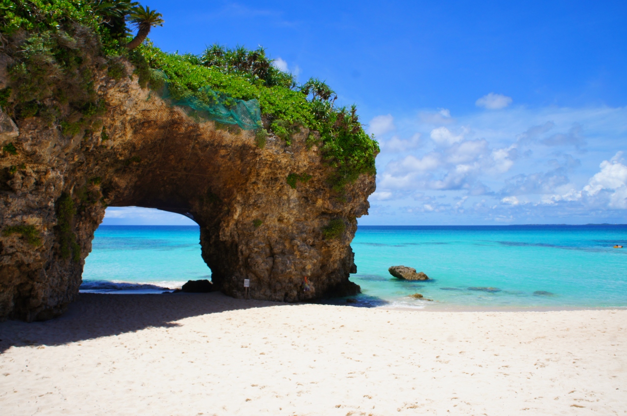 岩でできた天然のアーチが存在する白砂のきれいなビーチです。ここのビーチでも遊泳が可能なようで、遊んでいる人もいました。駐車場もありますが、駐車場から砂山ビーチまではちょっとした丘を越えて歩いていく必要があります。