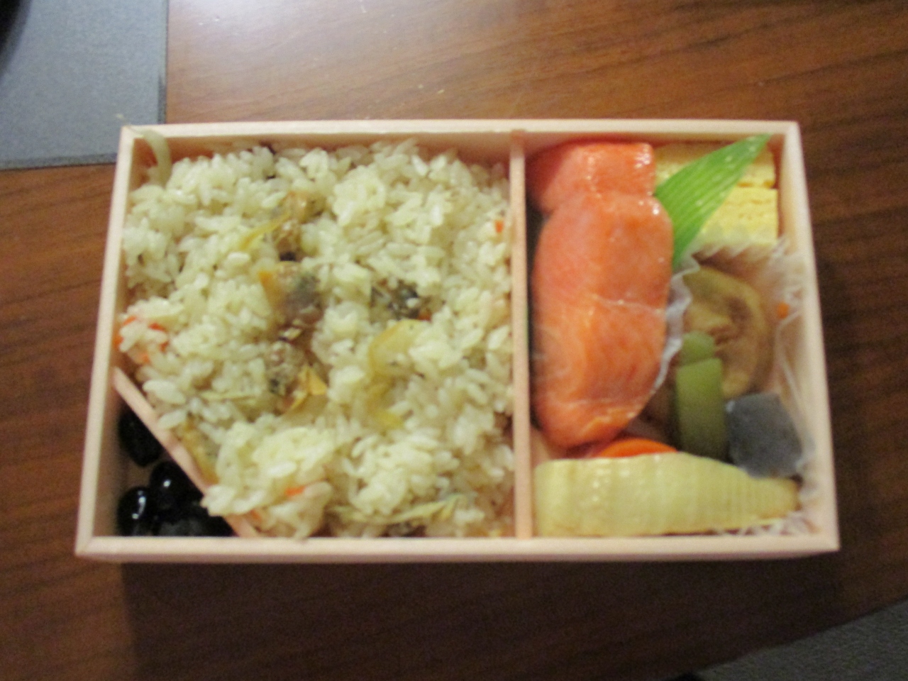 夫婦でコンラッド東京に宿泊、昼食を中華料理のコースにしたので、夕食は部屋で軽いものをいただくことにし、グランスタへ弁当を買いに来ました。美味しそうな弁当がいろいろあって何を選ぶか迷いましたが、「てとて」というお店にあった焼魚とあさり御飯の弁当が軽くて美味しそうで値段も手頃だったので、2つ購入しました。ホテルの部屋へ戻り2人でいただきましたが、これが期待通りの美味しさで満足しました。
