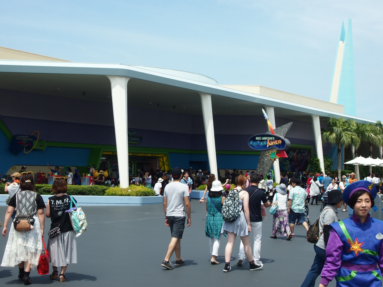 2人乗りの乗り物に乗って固定式の銃で的に向かって撃ちまくるアトラクション