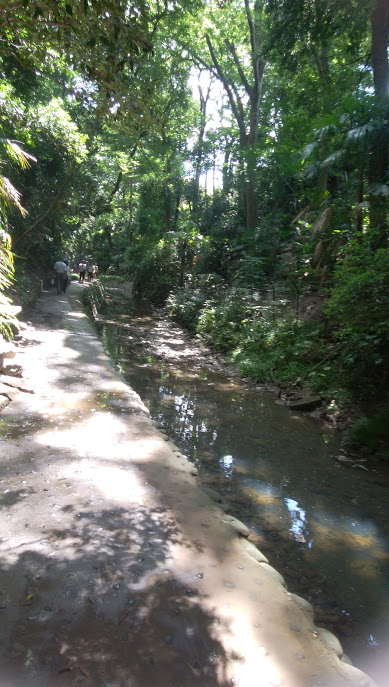 首都圏在住者にとっては、たまに聞く渓谷で都会の中の渓谷ということで有名な場所です。今回、初めて訪問しました。大井町線の等々力駅から渓谷の入口までは徒歩で2~3分ぐらいの場所で、そこから渓谷の川沿いの遊歩道におりて行きますが、急に緑豊かなマイナスイオンの世界に入り込みます。細い川の両岸が斜面になっていて、渓谷と言えば渓谷ですが、それよりもむしろ両岸が緑豊かな小さな川というのが適切な表現じゃないかと思う場所です。東京23区内の場所ですがかなり珍しいくらいの緑の濃さです。