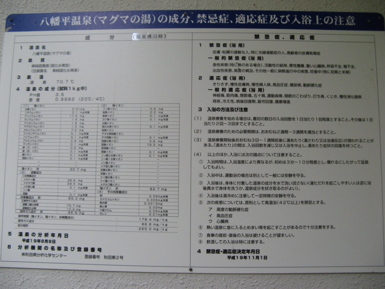 八幡平を観光した時に、八幡平ロイヤルホテルの“マグマの湯”に入りました。源泉となっているマグマの湯は、松川地熱発電所の蒸気を利用しているという変わった温泉です。地下一階にある大浴場と露天風呂は源泉かけ流しの単純硫黄泉、湯は透明で、においは僅かに硫黄を感じるもの。露天風呂は、場所柄周囲の景色は全く見えませんが、周囲に木が植えられていて風情のある露天風呂になっています。入浴後は、肌がすべすべになり身体もよく温まりました。