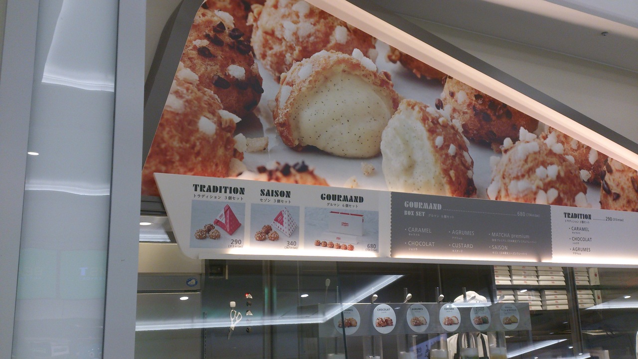 新南駅の新南口のニューマンに行きました。とてもおしゃれで美味しそうなお店が沢山ありました。今回はシュークリーム専門店のシューダンフェールパリで大人気のシュークリームを買ってきました。
