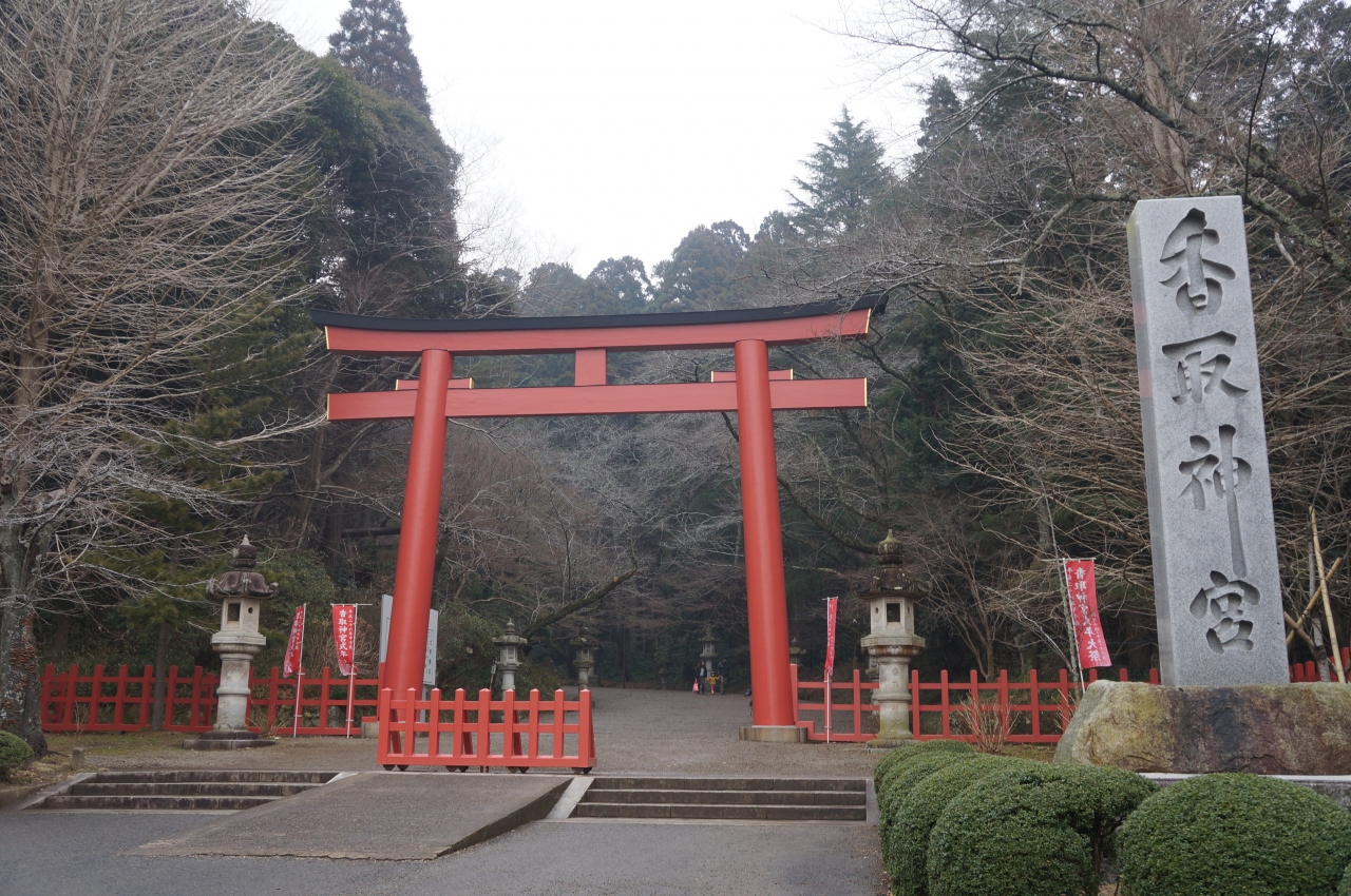 下総国一宮の香取神宮。東国三社(鹿島神宮、息栖神社、香取神宮)を巡ったのですが、いずれも利根川下流域に鎮座する神社で、古代は「香取海」という内海が広がっており、三社の鎮座位置はその入り口にあたるそうです。香取神宮の主祭神は、経津主大神で天孫降臨に先立つ葦原中国平定においてタケミカヅチ(鹿島神宮祭神)とともに大国主命と国譲りの交渉を行なった神です。