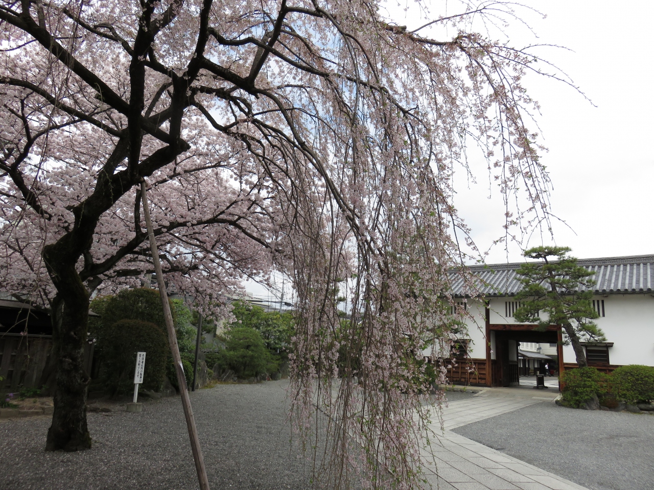 4月の頭、南禅寺のあたりまで桜を探しに出かけました。丸太町大橋を渡ってまずは聖護院門跡。以前来たときに境内に枝垂桜があるのを思い出し、少し遅いと思いながら入ってみました。散り始めていましたがまだまだ見事。枝垂桜は早いのでソメイヨシノの開花が発表されるあたりの3月末あたりがベスト。