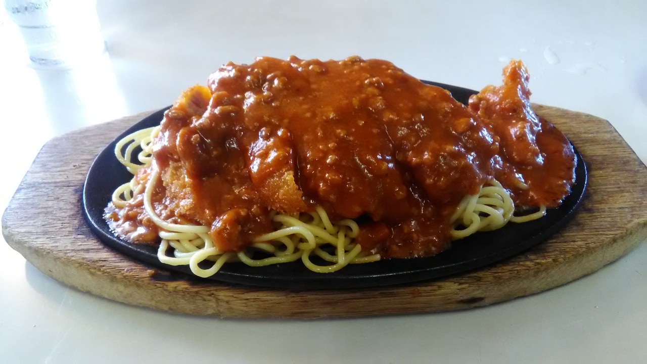 なるほど評判どおりなかなかのボリューム。ミートソースがトンカツによく合う。昔のデパートの食堂にあったような少し懐かしい味付け。