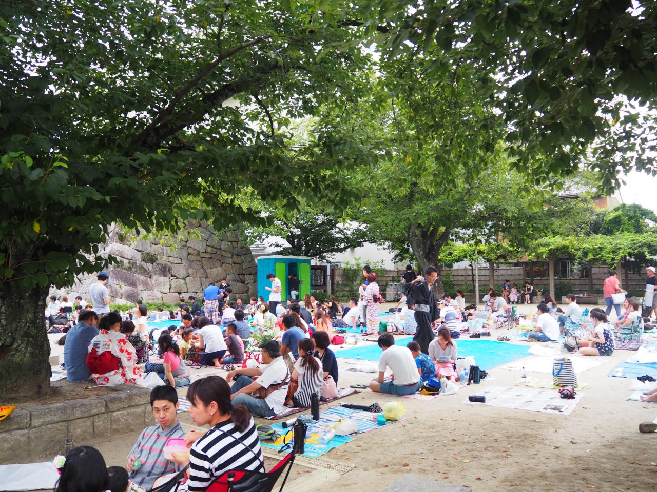 ネットでいろいろおいでん祭りについてしらべていたときにいろいろなサイトでこの公園が穴場スポットと書いてあったのでいってみたのですが公園はほぼ人で埋まっていました。トイレがあるのはうれしいですけどね。あとは特に普通に公園です。