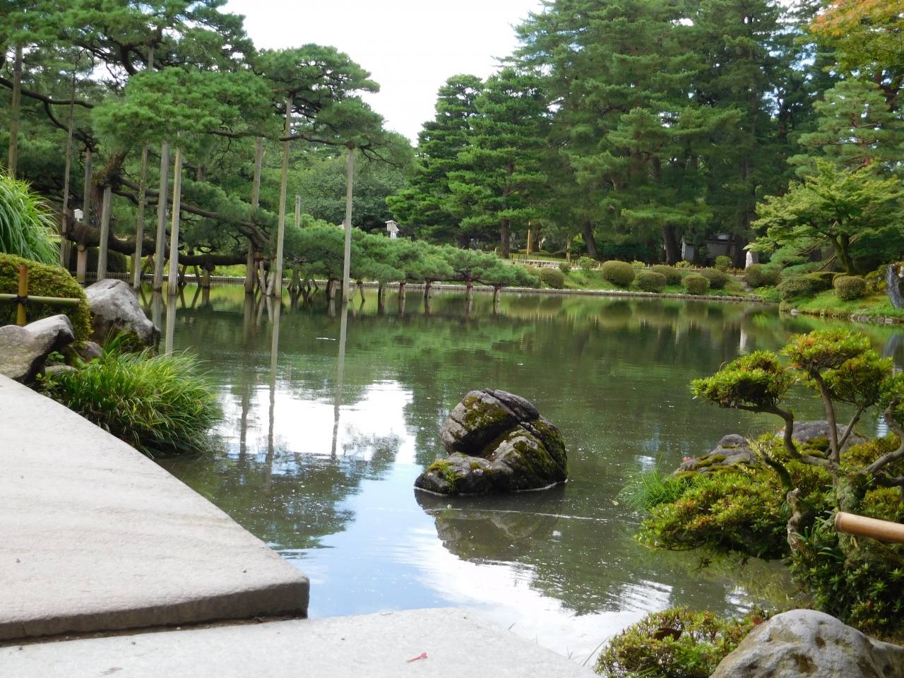 兼六園の中心にある大きな池で、広さは5,800?あります。池の周囲には、沢山の松の木が植えられているので、池の周りを散策しながら、沢山写真を撮る事が出来ました。水面に木々の姿が映って、とても風情のある景色を楽しむ事が出来ました。
