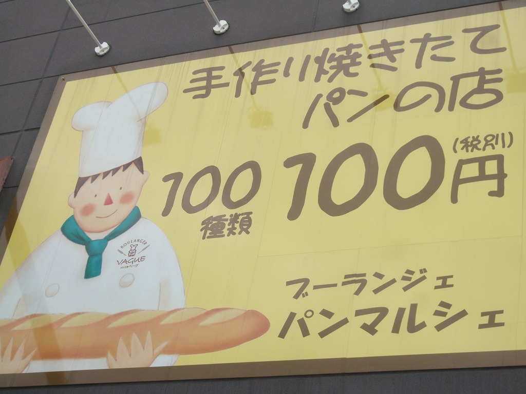 生活館の壁の大きな看板に「100種類のパンが1個100円」と書いてあるので、入ってみました。