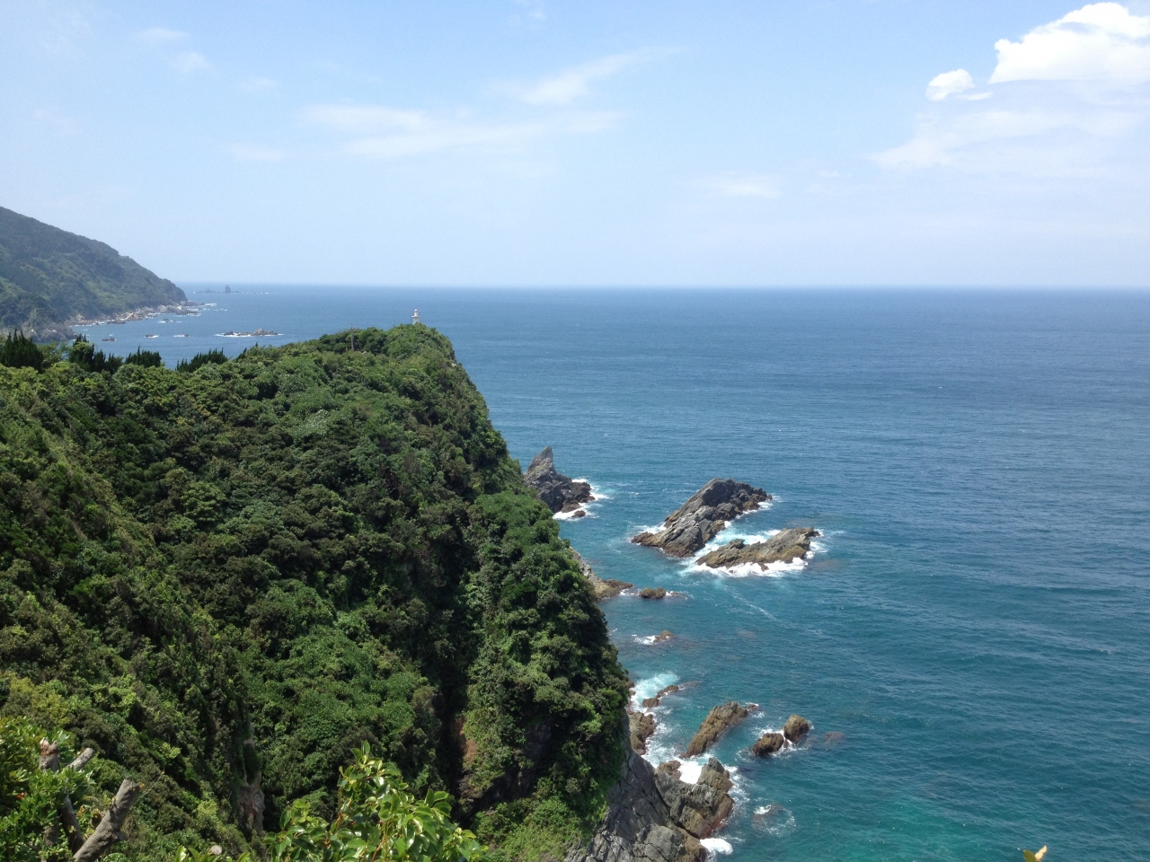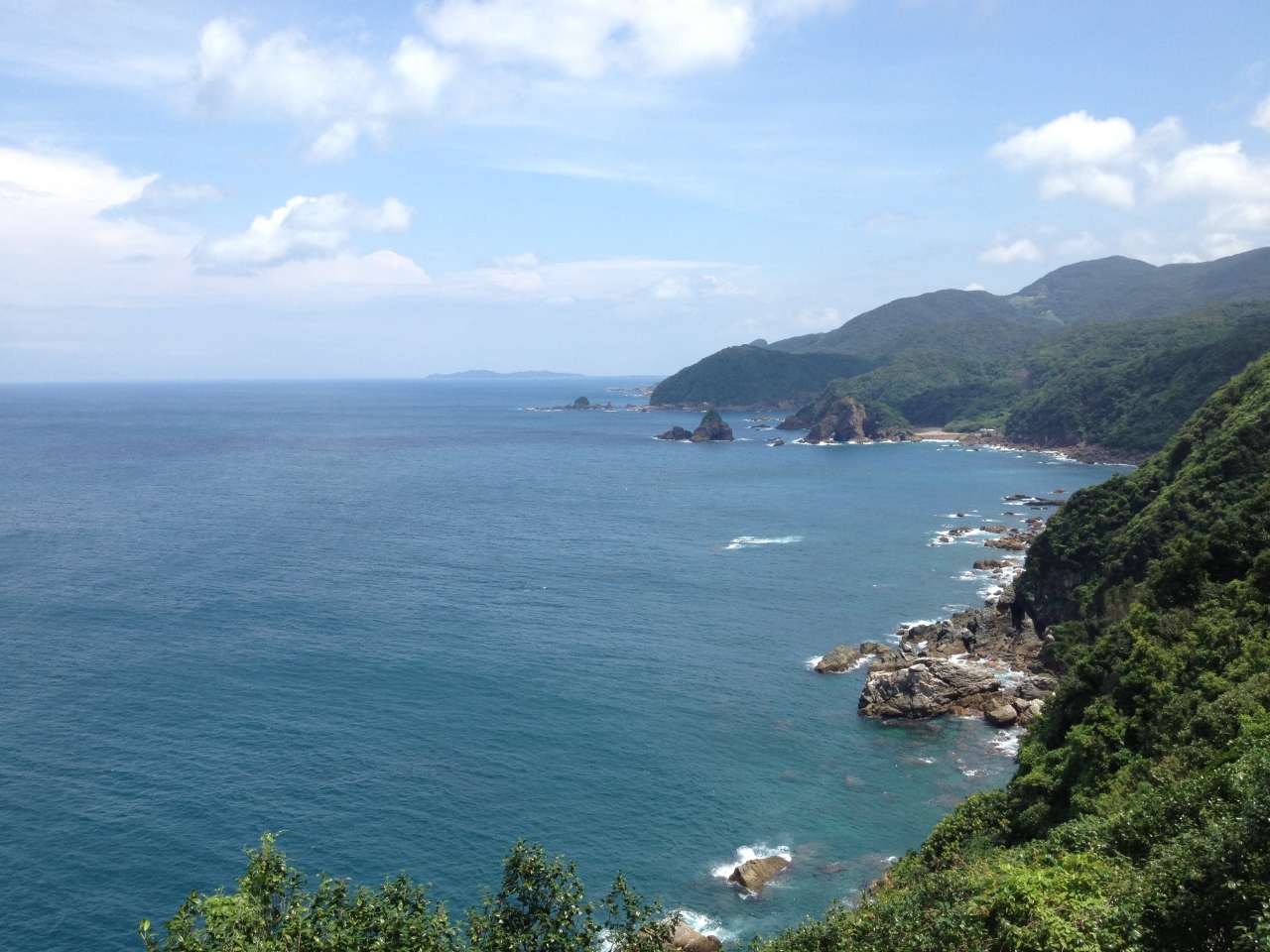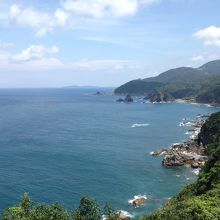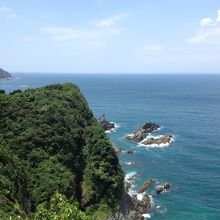 天草下島の西海岸は切り立った崖になっており、外海に直接接しています。県道389号沿いに車を走らせると崖下に碧い海が広がっており、妙見浦では車を停めて、海風を感じながら眺めることができました。危険ですので、規制の柵の外には出ないようにしてください。
