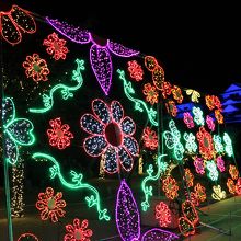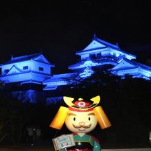 さまざまな光のオブジェが並び、天守もブルーにライトアップされ幻想的で勇壮。