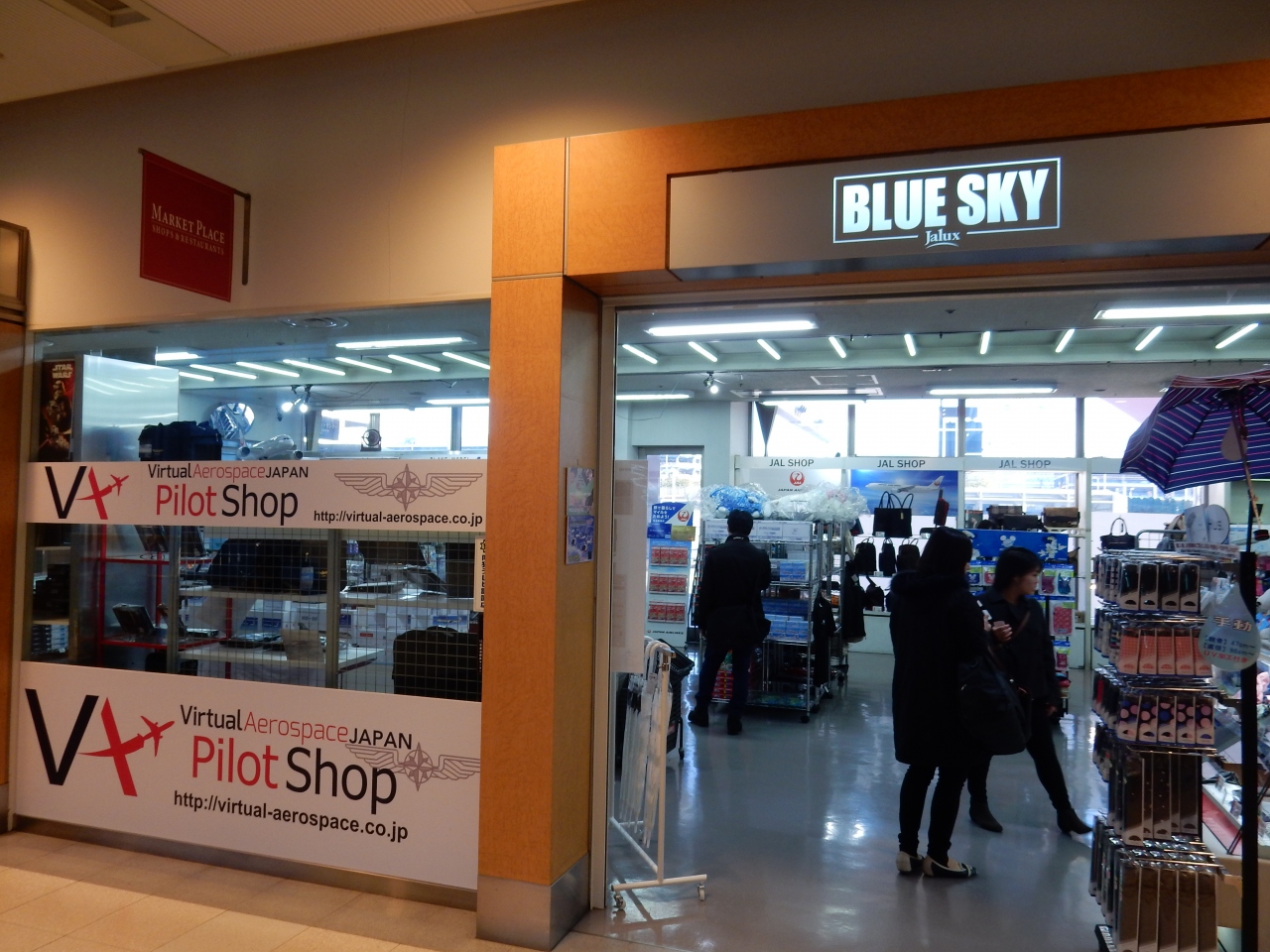 ブルースカイなので、JALのお店です。飛行機の模型やJALのロゴの入ったグッズがたくさん売られています。