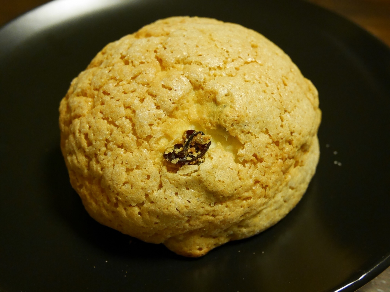 ---コーヒーとレーズンクッキー生地で包んだメロンパンのようなパン。