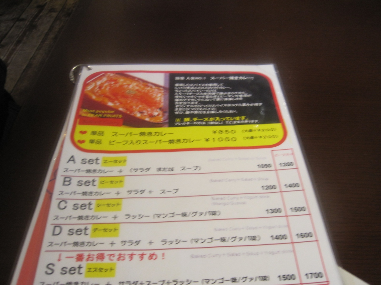 焼きカレーは単品で850円、注文はビーフ入り1050円というのにしました。
