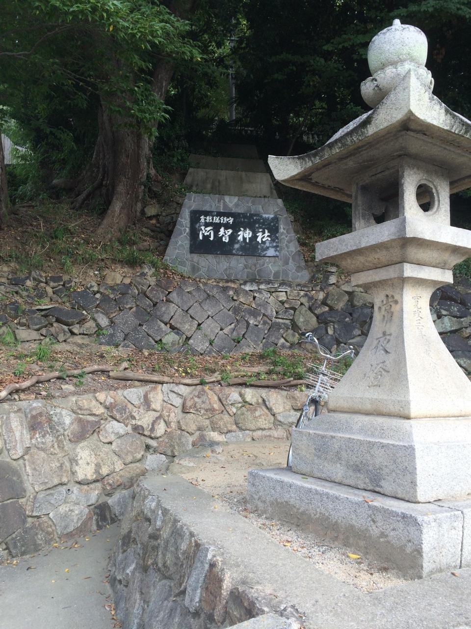 祭神は宗像三女神の皇祖神、天照大御神と素蓋鳴尊の娘神で、海の守護神であり、交通交易、財宝、芸術、美の神で応神天応を始め、約三十柱の神々をお祭りし、古代から神の島としてあがめられてきている。鳥居の階段側に阿智神社の石碑と灯篭があり、初めの階段は百度石(100段)があり二番目は還暦坂(61段)、、三番めは厄除坂(33段)を登ると正面に拝殿と本殿、左手に絵馬殿、右手に神楽殿と参集殿、奥には倉敷護国神社と菅原神社、城山稲荷と広大な神社で見ごたえ抜群で、当初の想像以上でした。来て良かったです。