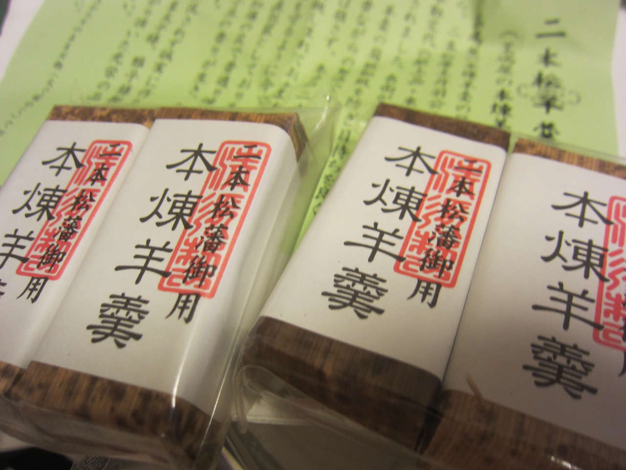 電車が行ってしまい1時間ほど時間を持て余してしまったため駅前をぶらぶらしていた際に立ち寄ってお土産に本煉羊羹を買いました。ここの本煉羊羹は江戸時代から作られ、藩主丹羽公の御用菓子として参勤交代の献上品・東北列藩のお買上しなとされたそうで、表面の砂糖が皮膜態になっていて羊羹の腐敗を防ぎ日持ちをよくさせているそうです。皇太子様・雅子様御来県の際にも召し上がったそうで、たくさん買ったわけではありませんでしたが、ちゃんと本煉羊羹の栞を付けていただきました。有名なのは玉羊羹のようですが、本煉羊羹も歴史ある銘菓です。