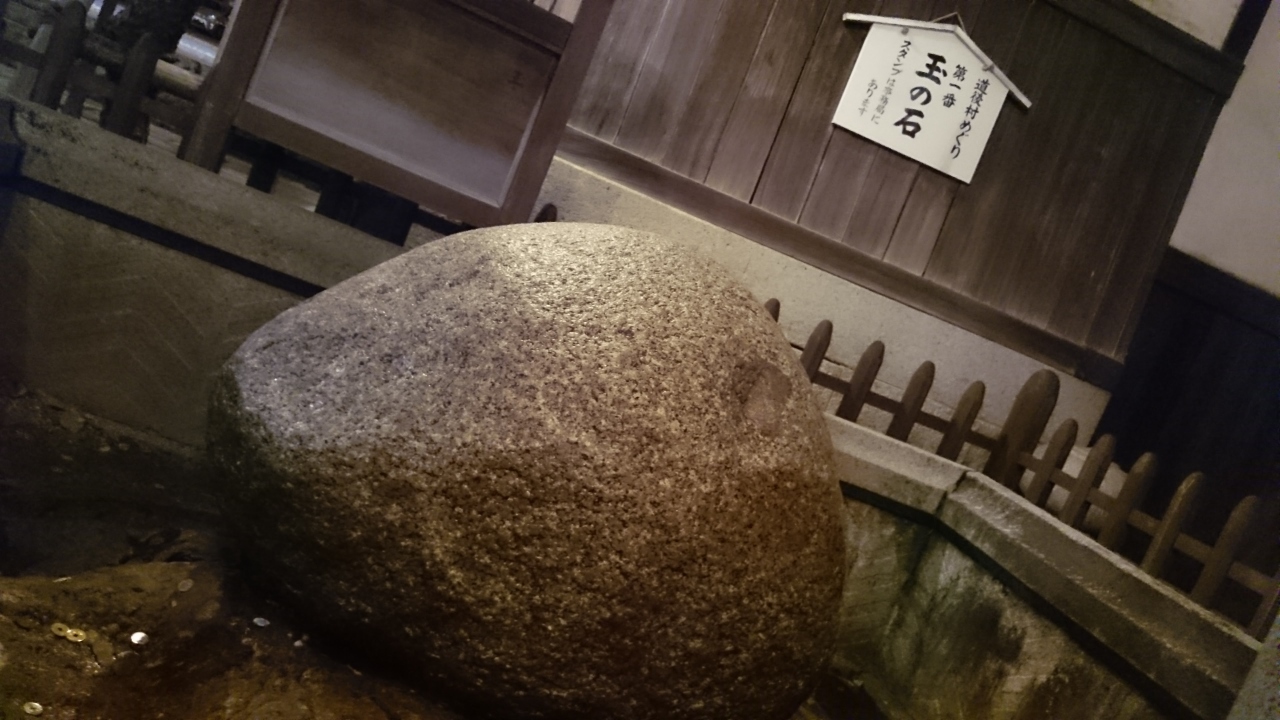 特に見ごたえはありませんが、角がなく、丸くて大きな岩がおいてあります。道後温泉本館の正面玄関に向かって(中に入らず)建物に沿って左奥へ行くと、暗がりにひっそりありました。注意してみてください。願い事がある人にとってはマストポイントかと思います。