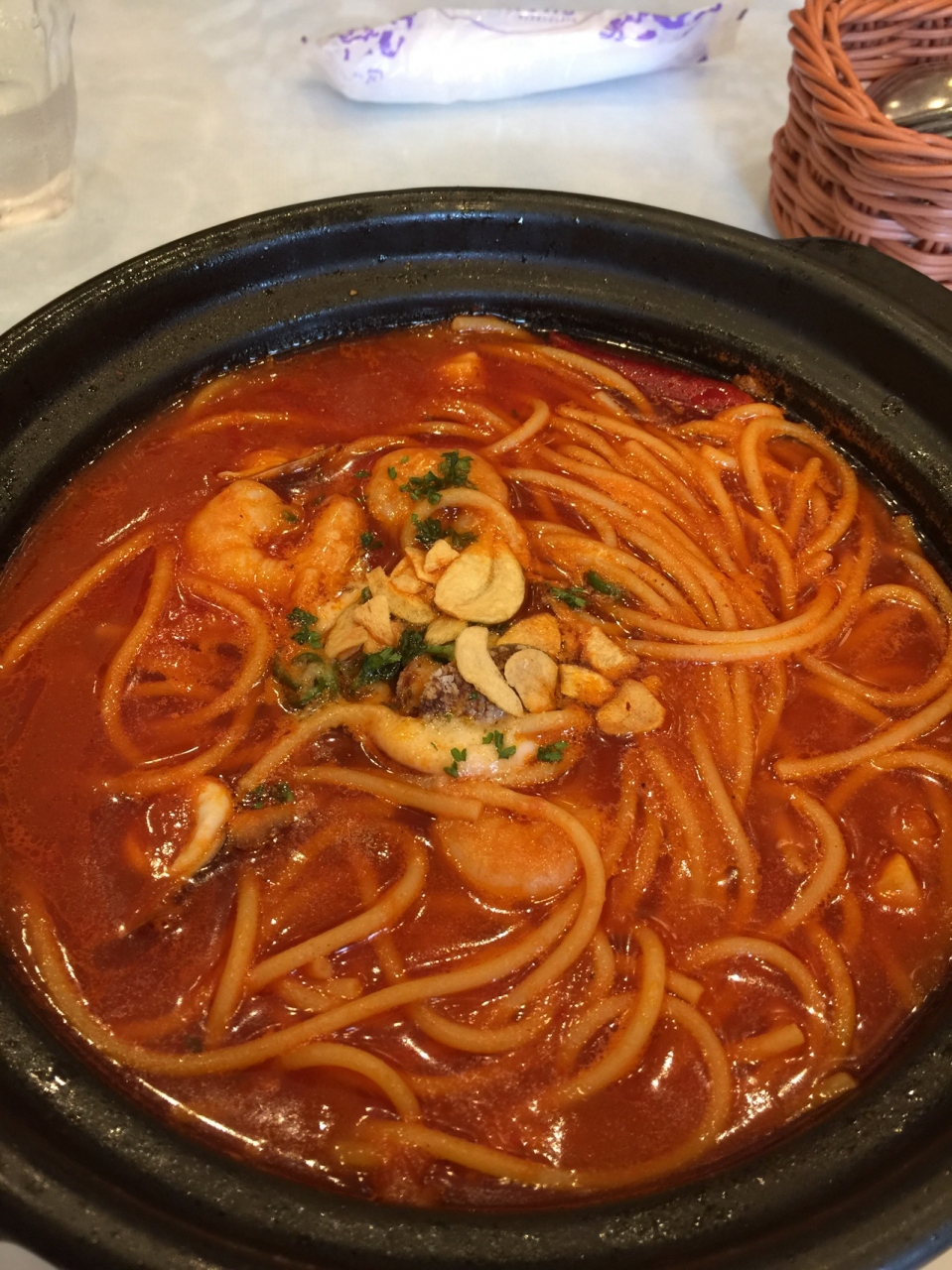 12時頃行きましたが、20分くらい待ちました。子供用にミートソース、大人はカラブリア風とカターニャを注文しました。ミートソースはやや甘めで麺は太麺、カラブリア風はピリ辛のトマトスープパスタでこちらも太麺、カターニャは普通の太さの麺でした。
